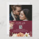 Make your wedding planning easier with this elegant QR code invitation featuring a romantic floral arrangement in burgundy, blush, and ivory on a black background. The back includes space for your photo and a scannable RSVP link for convenience. Perfect for a modern rustic or moody autumn wedding.