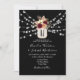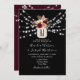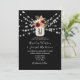 Elegant, modern, bohemian rustic black wedding invitation with monogram, beautiful watercolor burgundy flowers in mason jar, string lights and trendy calligraphy script. Perfect choice for romantic fall or winter weddings!