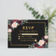 Burgundy Blue Floral Wedding RSVP Black Gold Card