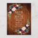 Burgundy Blue Floral Wood Geo Frame Save the Date Postcard