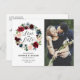 Burgundy & Blue Floral Wreath Photo Save the Date Announcement Postcard
