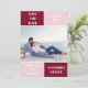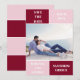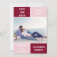 Burgundy red and blush pink colour block wedding Save the Date card. The black includes a pattern with wide bands in burgundy and blush pink.