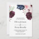 Personalise these elegant floral wedding invitations in burgundy and blush tones with a hint of navy blue. The beautiful watercolor flowers look stunning on a classic white background. The back of the card has a burgundy watercolor design.