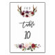 Burgundy Blush Floral Antlers Wedding Table Number