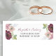 The borders of this romantic modern wedding invitation return address label feature watercolor floral bouquets in shades of burgundy and blush pink. The customisable text combines elegant burgundy handwriting script and charcoal grey copperplate font on a white background. Ideal for a fall or winter wedding.