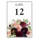 Dress up your wedding or party tables with this chic burgundy & blush floral Table Number Card.