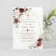 Burgundy Blush Flowers Gold Frame Cross Baptism Invitation
