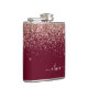 Burgundy Blush Pink Rose Gold Glitter Monogram Hip Flask
