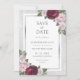 Complement your burgundy, blush and silver wedding celebration with these elegant floral save the date cards. Matching items available.