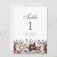 Burgundy Boho Floral Wedding Table Number