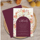 This boho fall rustic Wildflower arch burgundy Wedding details Enclosure Card with easy-to-use templates in elegant modern typography script. A stylish and useful addition to your burgundy ivory cream wedding invitation suite, designed to seamlessly complement the boho charm of your celebration. Featuring hand-painted watercolor wildflower meadow in warm, autumnal tones of burnt orange, terracotta, purple, yellow, coral, burnt umber, peach, and soft pink, this card adds a touch of elegance and whimsy. The beautiful romantic bohemian rustic autumn florals create a refined yet nature-inspired aesthetic, while the elegant script typography adds a modern contrast. Designed with original artwork by Catherine Sweetman, this enclosure card captures the essence of your celebration, inviting your loved ones to join you in a warm, unforgettable celebration of love.