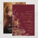 Burgundy Boho Wildflowers & Photo QR Code Wedding Invitation