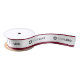 Custom your own branded ribbon with burgundy border and company logo on color editable white background, great gift wrapping ideas for business. No minimum order quantity and no setup fee.