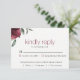 Watercolor burgundy flower and botanical branches with matching colour backing, wedding RSVP cards with meal choice option. Personalise text font style, colour, and size.