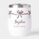 Burgundy Bow Bridesmaid Personalised Script Name Thermal Wine Tumbler features a seamless burgundy bow border design on a crisp white background. With a personalised script name beneath the bow and customisable "bridesmaid" text, this tumbler is the perfect combination of elegance and functionality. Ideal for bridal showers, bridesmaids, maids of honour, or even the bride, this wine tumbler offers a luxurious, modern, and timeless design. It's both beautiful and minimal, making it a thoughtful and trendy gift for any wedding party.🦋 You can easily customise the product by adding your name and text (such as "bridesmaid") to make it completely unique. You can also change the font to your liking by opening "Personalise this template" > "Edit using Design Tool".