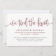 We tied the knot! Announce your marriage to family and friends with this simple and elegant wedding announcement. It features red whimsical calligraphy with classic typography. Personalise by adding names, date, address and other details. This script wedding invitation is perfect for any wedding season and theme.