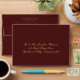 Elegant burgundy wedding address envelope with classic gold calligraphy, perfect for formal, luxury, and timeless wedding stationery suites