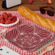 Burgundy and cream abstract floral botanical repeat pattern. A unique tableware option for your next retirement or botanical themed party.