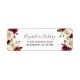 The borders of this romantic modern wedding return address label feature watercolor floral bouquets in shades of burgundy and cream. The customisable text combines elegant burgundy handwriting script and charcoal grey copperplate font on a white background. Ideal for a fall or winter wedding.