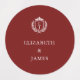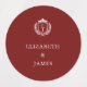 Add a polished and personalized finishing touch to your wedding details with these elegant wedding labels. Featuring a classic burgundy crest with the couple’s stacked initials, this design includes the bride and groom’s names and wedding date for a timeless and sophisticated look.