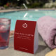 Add a charming and elegant touch to your wedding tables with this burgundy wedding bar table tent. Featuring a rich burgundy background and crisp white typography, this design showcases a classic crest with the couple’s stacked initials at the top. Centered below, the sign reads “The Bar Is Open” with the romantic phrase “Cheers to Love”, creating a timeless, sophisticated accent for your reception tables.