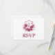 Burgundy floral peony flower crest with initials wedding RSVP Card with QR code. This elegant wedding RSVP card masterfully combines the artistry of porcelain with the elegance of traditional Chinese aesthetics. Featuring a floral crest adorned with peonies that evoke the charm of classic ink paintings, it captures a sense of romance and sophistication. The delicate blooms are presented in burgundy, pink and soft white hues. Additionally, the back of the piece includes a QR code for convenient online RSVPs.