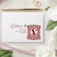 This envelope design features a luxurious and fully personalised style. At its heart is an ornate damask frame adorned with flowing floral motifs and delicate heart details, within which a bold alphabet letter rests, giving the piece a regal identity. The deep burgundy tones contrast beautifully with the light background, creating a rich, sophisticated finish. The damask pattern brings a sense of timeless tradition, while the hearts add a romantic touch, making the overall design elegant and warm.
