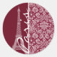 Burgundy Damask Pattern; Paris Classic Round Sticker
