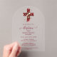 Burgundy Elegant Glitter Floral Cross Baptism Acrylic Invitations