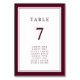 Burgundy Elegant Simple Minimal Border Wedding Table Number