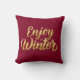 Burgundy Enjoy Winter - Gold Script Holiday Decor Cushion