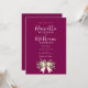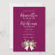 Announce your upcoming nuptials with this romantic wedding invitation suite in a rich burgundy hue. Adorned with a delicate eucalyptus and floral arrangement tied with a graceful bow, this design embodies natural elegance. The flowing script font enhances the romantic feel, perfect for couples seeking a timeless and chic wedding. This invitation suite provides all the necessary details for your guests, from the ceremony to reception and accommodation information, ensuring a seamless experience for everyone.