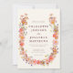 Designed by artist Catherine Sweetman, this unique wedding invitation showcases a beautifully detailed dried flower wreath in warm, earthy hues burnt orange, terracotta, burnt umber, coral, peach, brown, yellow, green, purple, and soft pink. The burgundy background adds a deep, romantic tone, while the burnt orange script enhances the natural, autumnal aesthetic.