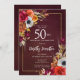 Burgundy Fall Flowers Elegant Script 50th Birthday Invitation