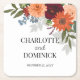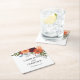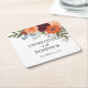 Burgundy Fall Garden Floral Wedding Square Paper Coaster