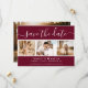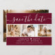 Elegant burgundy wedding photo save the date card featuring a modern script font and a photo collage. Easily personalise this card with your images and wedding details including a wedding website if applicable.