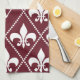 Burgundy Fleur de Lis with monogram initial Tea Towel
