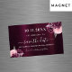 A magnetic Save the Date card for a 50th birthday party. A deep burgundy background decorated with burgundy and pink florals. Personalise and add a date and name/age. The text: Save the Date is written with a hand lettered style script with swashes.