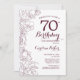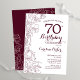 Burgundy floral 70th birthday party invitation. Elegant design in marsala wine and white featuring botanical outline drawings accents and typography script font. Simple trendy invite card perfect for a stylish female bday celebration. Can be customised to any age. Printed Zazzle invitations or instant download digital printable template.