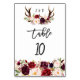Rustic Burgundy Red Blush Floral Antlers Monogram card design featuring gorgeous watercolour floral bouquets, arrows with hearts and floral bouquet as a divider, handwriting "Table". Use Customise tool to add your info. You can change fonts, colours. For matching items, please, visit my Burgundy Blush Marsala Floral Antlers Collection.