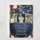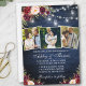 Burgundy Floral Blue Wood 3 Photo Lights Wedding Invitation