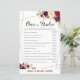 Burgundy Floral Bridal Shower Game, Wedding Shower