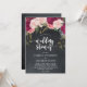 A beautiful burgundy and blush pink floral design wedding shower invitation with a chalkboard effect background, with greenery accents and a co-ordinating chalk reverse side. Easy to edit or delete the available text fields to personalize the information with your own details for a custom and professional looking invitation. Lots of matching items in this boho collection. Please visit my shop to see the full range and to create a suite of items using this lovely design.