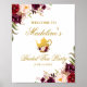 Burgundy Floral Gold Bridal Shower Tea Welcome Poster
