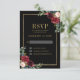 Burgundy Floral Gold Frame Navy Blue Wedding RSVP Card