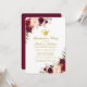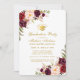 Watercolor Burgundy Marsala and Gold Floral Graduation Party Invitation Card - Gold Text - Rounded Edges - Burgundy Back
