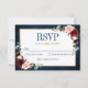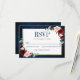 Burgundy Floral Gold Navy Blue Rustic Wedding RSVP Card