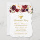 Watercolor Burgundy Marsala and Gold Floral Graduation Party Invitation Card - Gold Text - Bracket Style - Burgundy Back