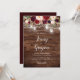 Burgundy Floral Mason Jar Lights Wood Wedding Invitation