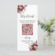 Burgundy Floral Modern QR Code Wedding Bar Menu